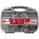 Composée de 700 écrous frein acier zingué : - Ø 3 mm (100 pièces), - Ø 4 mm (100 pièces), - Ø 5 mm (100 pièces), - Ø 6 mm (200 pièces), - Ø ...