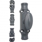 En fonte. Pour tringle ½ ronde 16 x 8 mm. Composition du kit : - 1 boitier RY59, - 1 coulant, - 2 chapiteaux, - 2 gâches. Dimensions boitier...