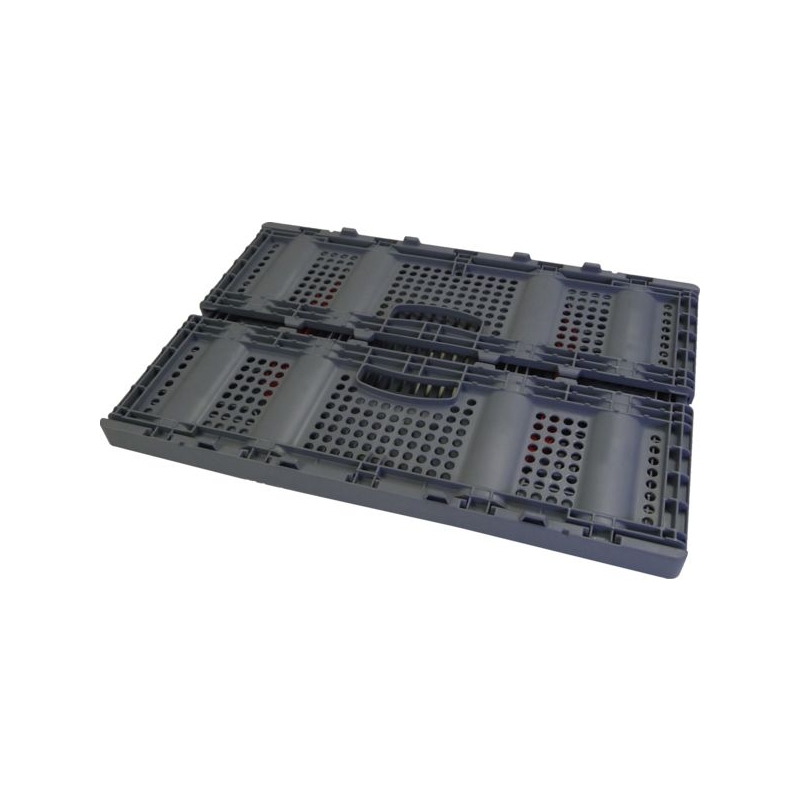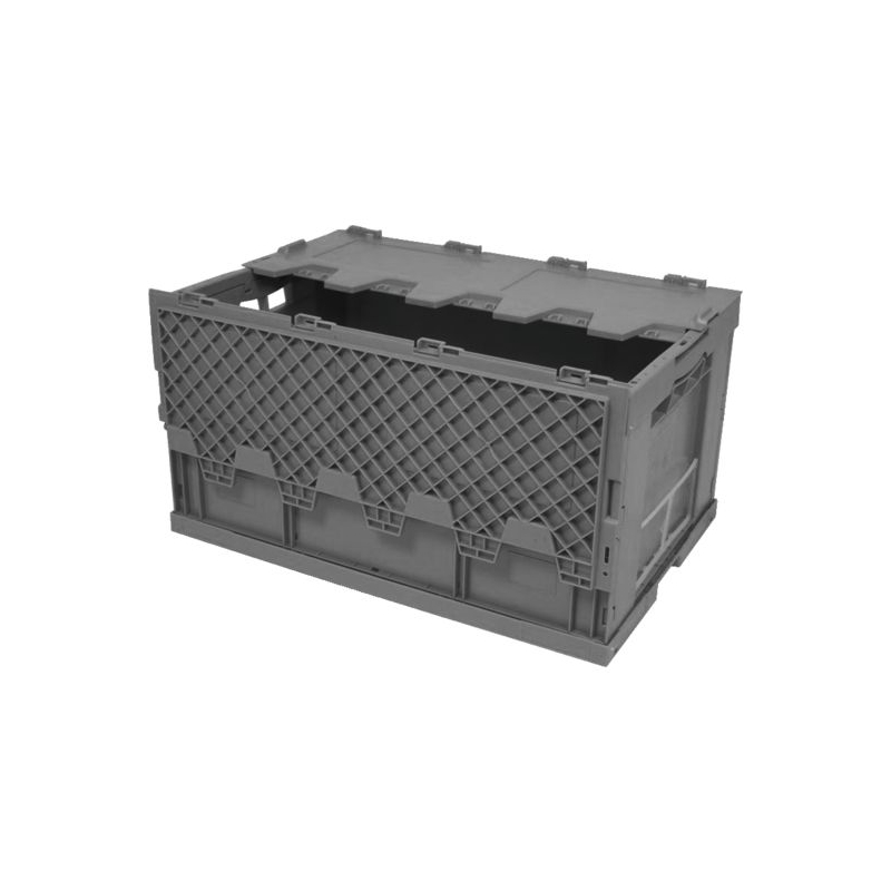 Gerbable et palettisable, en polypropylène (PP) gris de qualité alimentaire. Fonds et parois renforcés. Conforme aux normes européennes, stockage facile sur palette normalisée.