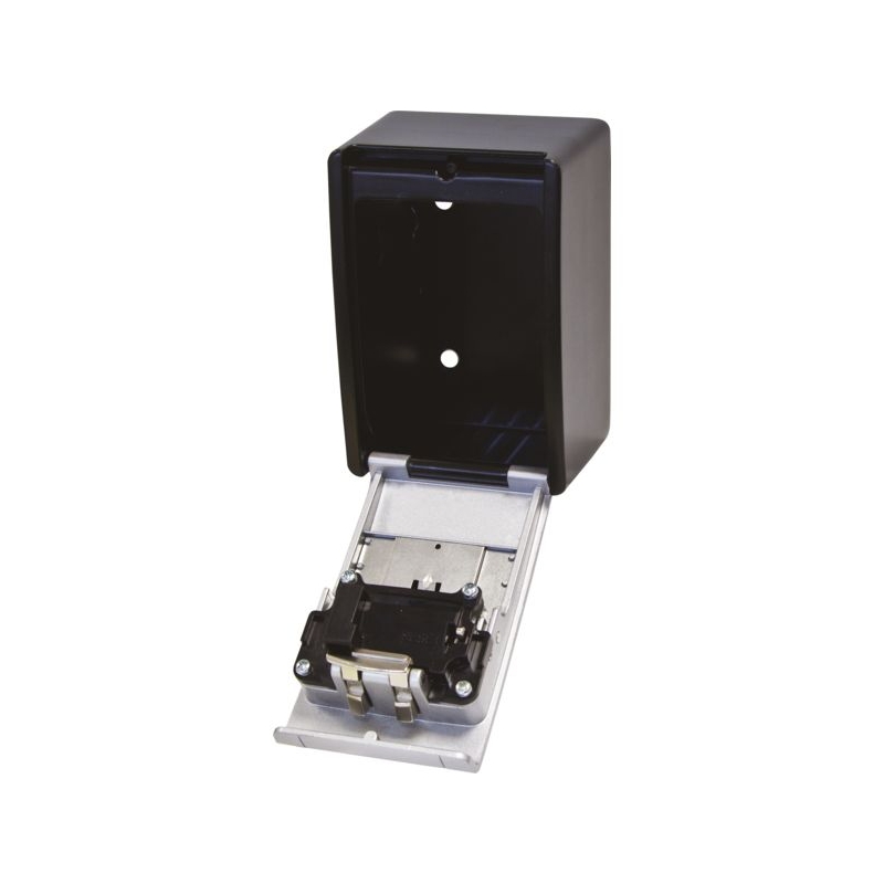 Boîtier métallique robuste permettant de déposer 50 clés ou 30 cartes. Clapet de fermeture en zinc. Code personnalisable à 4 chiffres. Crochet clé amovible, fixation au mur par vis (non fournies). Boîtier recouvert en PVC. Dimensions : 119 x 84 x 62 mm Conditionnement : blister Colisage: 8 pièces