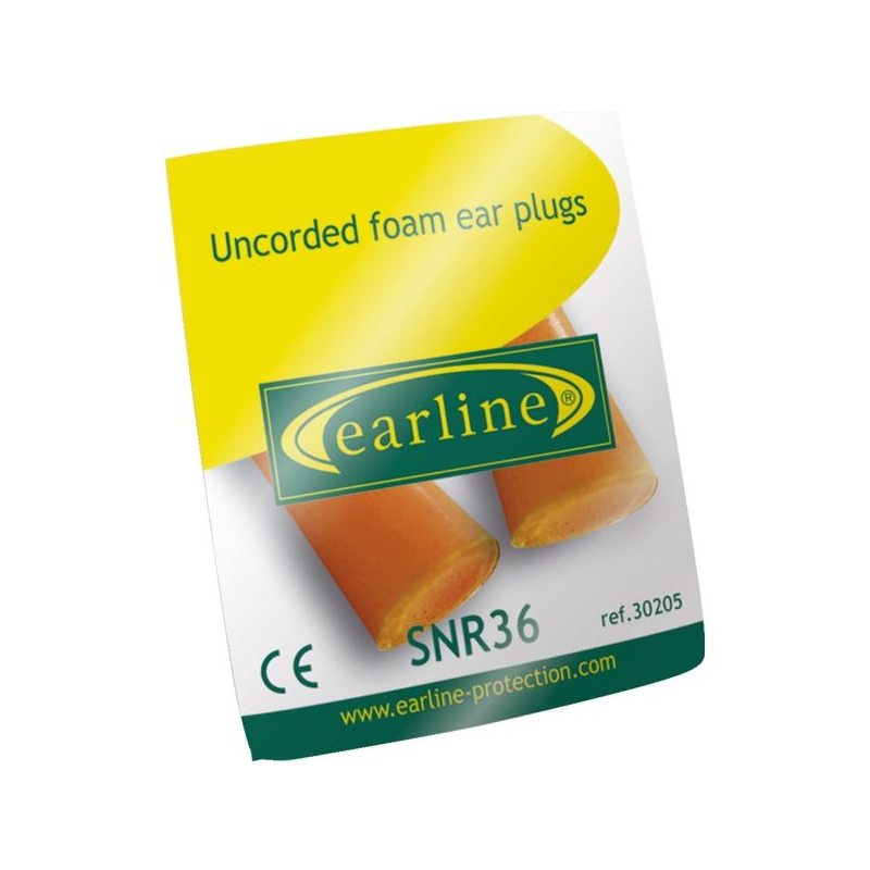 Atténuation SNR 36 dB. Bouchons d'oreilles à rouler, en mousse de polyuréthane, usage unique. Forme conique lisse qui s'adapte facilement à la forme du conduit auditif. Norme : CE Cat III - EN 352-2
