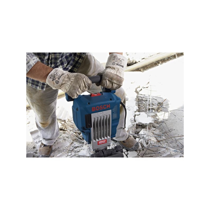 Système Vibration Control. Excellente maniabilité, performance exceptionnelle jusqu'à 13 t de béton/jour. Emmanchement : hexagonal 30 mm Puissance : 1750 W Puissance de frappe : 41 J Cadence de frappe : 1300 cps/mn Taux de vibrations : 13 m/s² Poids : 16,700 kg Livré en coffret de transport à roulettes avec burin pointu, tube de graisse, chiffon et poignée supplémentaire.