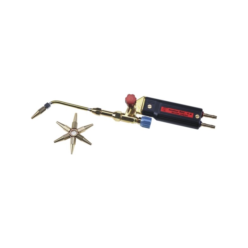 Pour les travaux de soudage et soudo-brasage type plomberie, chauffagiste... Épaisseur de soudage de 0.2 à 4 mm. Lance démontable en laiton permettant d'adapter des lances malléables en cuivre pour les endroits exigus. Anti-retour stop feu intégrés directement dans le manche ergonomique du chalumeau pour garantir la sécurité de l'utilisateur. Douille entrée fixe pour tuyau Ø 6,2 x 12 mm. Débit : 63 à 400 l/h Livré avec une clé 7 buses en laiton.