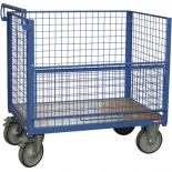 Idéal pour la collecte, la manutention et le stockage des marchandises. Habillage grillagé (maille 50 x 50 mm) et plateau intérieur en bois medium épaisseur 16 mm. Roues à bandage TPE Ø 200 mm, 2 fixes et 2 pivotantes à frein montées sur roulement à billes. Capacité de charge : 500 kg L x l x H : 950 x 650 x 700 mm Poids : 50 kg Livré monté. 70% recyclé, 73% recyclable
