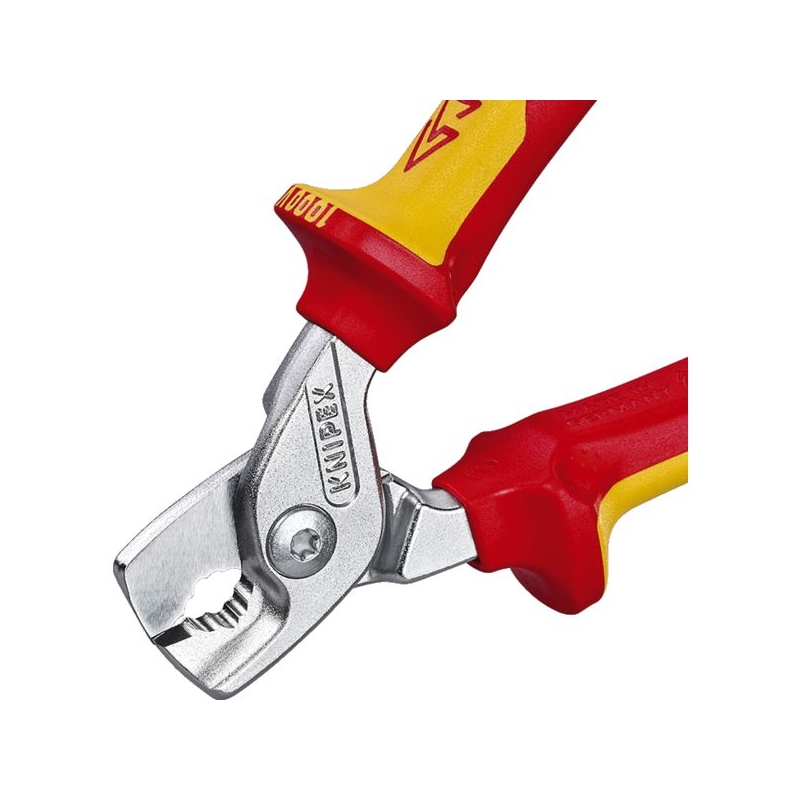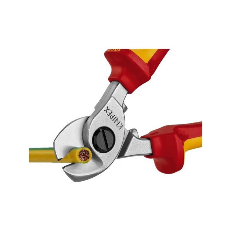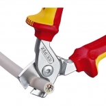 Coupe sans écrasement par étape en séparant les fils pour économiser de l'énergie. Tranchants trempés par induction. Protection anti-pincement. Poignées gainées bi-matière isolées 1000 V. Capacité de coupe : Ø 15 mm Longueur : 160 mm Norme : EN 60900