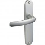 Monobloc en aluminium. Pour porte intérieure d'épaisseur 40 mm. Plaque emboutie avec montage par vis de reliure. Plaque : 185 x 41 mm Entraxe de fixation : 165 mm Entraxe de serrure : 70 mm Fouillot carré : 7 mm Finition : argent Conditionnement : boite Colisage : 20 pièces 100% recyclable.