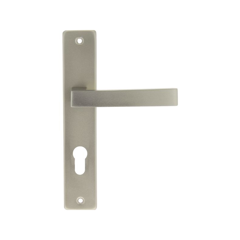 Pour porte intérieure d'épaisseur 40 à 45 mm. Plaque : 220 x 40 mm Entraxe de fixation : 195 mm Entraxe de serrure : 70 mm Longueur béquille : 122 mm Saillie de la béquille : 45 mm Fouillot carré : 7 mm Finition : inox velours Conditionnement : boite 100% recyclable.
