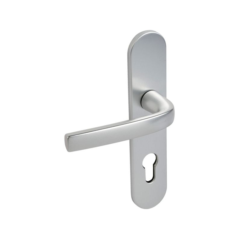 Monobloc en aluminium, béquille et plaque solidarisées. Pour porte intérieure d'épaisseur 40 mm. Plaque : 190 x 42 mm Entraxe de fixation : 165 mm Entraxe de serrure : 70 mm Fouillot carré : 7 mm Finition : argent Conditionnement : boite Colisage : 10 pièces 100% recyclable.
