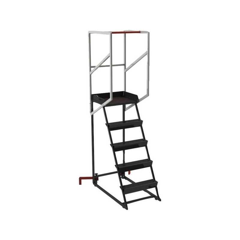 En acier mécano soudé, spécialement conçu pour les espaces restreints et passages étroits. Marches autoporteuses antidérapantes, garde-corps de sécurité et plateforme en tôle alu larmée antidérapante. Équipé de lisses et sous-lisses pour une plus grande sécurité. Réf. 22550-4 et 22550-5 équipées de stabilisateurs orientables et d'une barre anti-chute. Dimensions plateforme : 408 x 480 mm Conforme à la norme EN 131. 85% recyclé, 95% recyclable