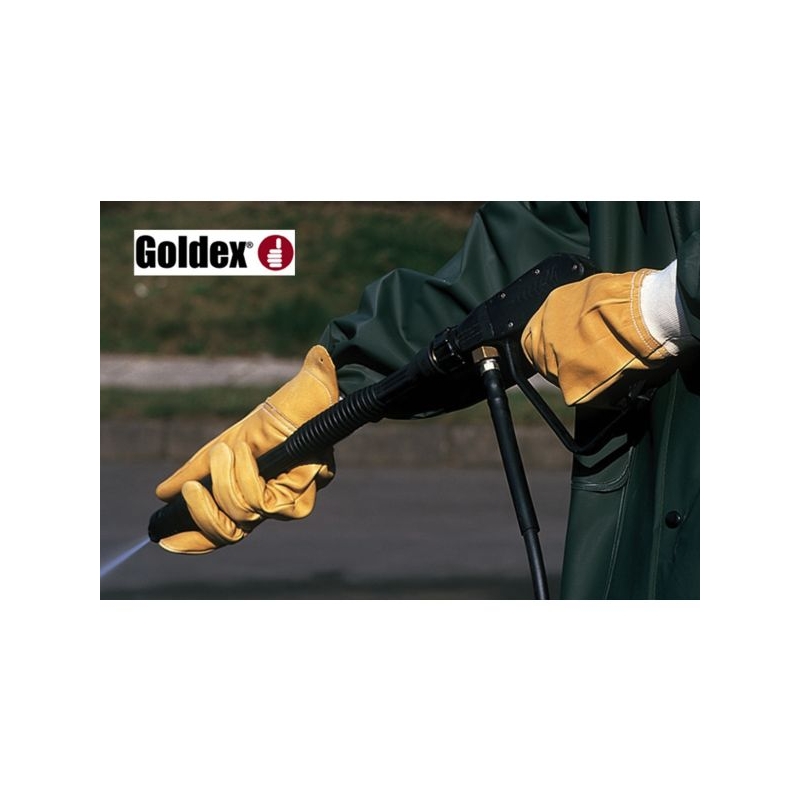 Cuir pleine fleur de bovin hydrofuge. Montage américain (pouce palmé), poignet bord côte élastique avec protège artère en cuir et boutonnière. Manutention lourde / Milieu humide Applications métiers : espaces verts, floriculture, arboriculture, entretien des voiries, travaux maraîchers, industrie forestière, manutention Taille : 8 à 11 Norme : CE Cat II - EN 388 (2121X)