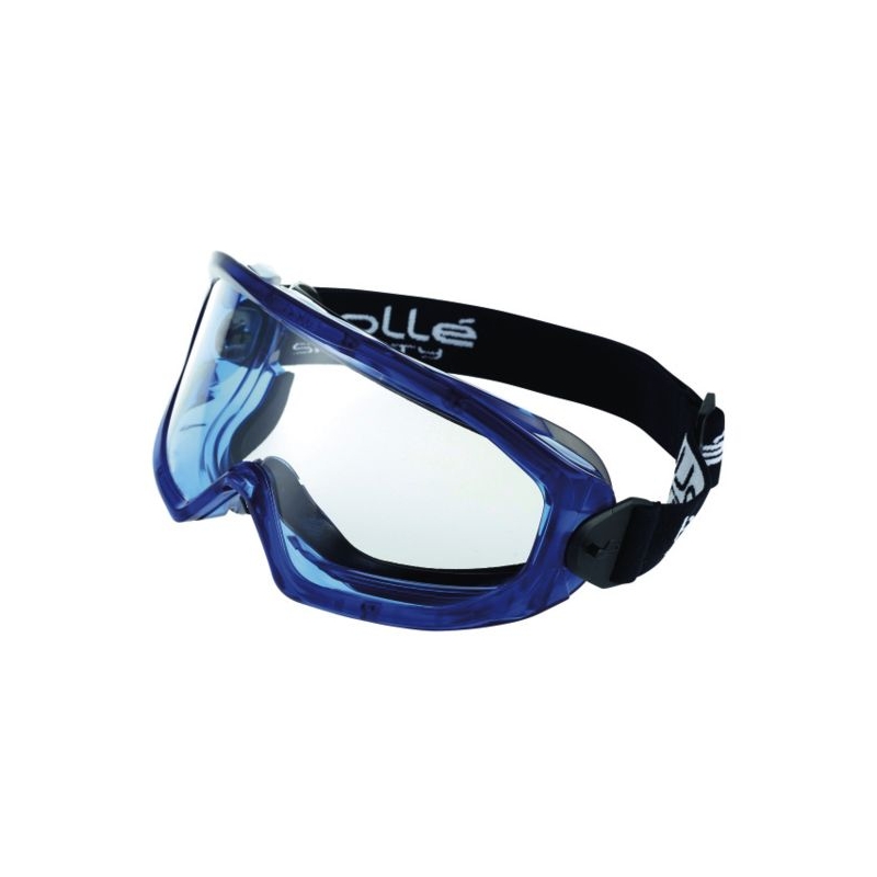 Monture souple en PVC avec goulotte de débordement extérieur pour les liquides. Oculaires en polycarbonate incolores traités antirayures et antibuée. Champ de vision exceptionnel. Permet le port de lunettes correctrices et d'un demi-masque respiratoire. Poids : 113 g Norme : CE Cat II - EN 166