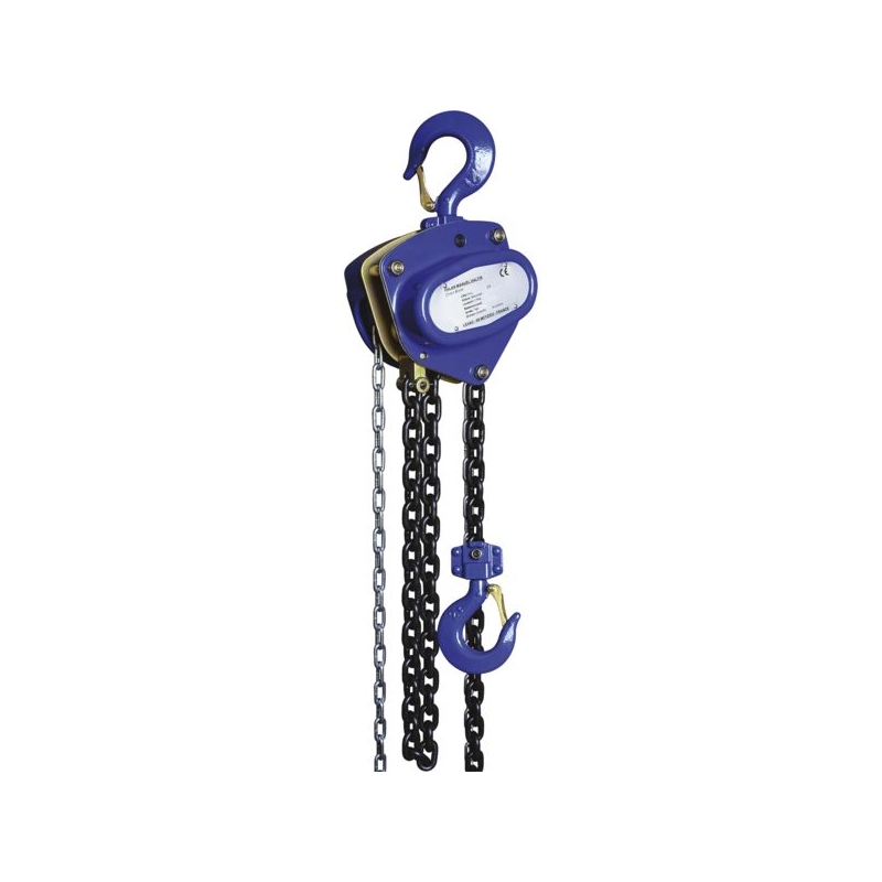 Equipé de crochets en acier forgé avec linguet de sécurité forgé. Chaîne de charge grade 80 coefficient 4 selon norme EN 818.7, traitement anticorrosion. CMU : 1000 kg Ø chaîne : 6 mm Hauteur de levée : 3 m 60% recyclable