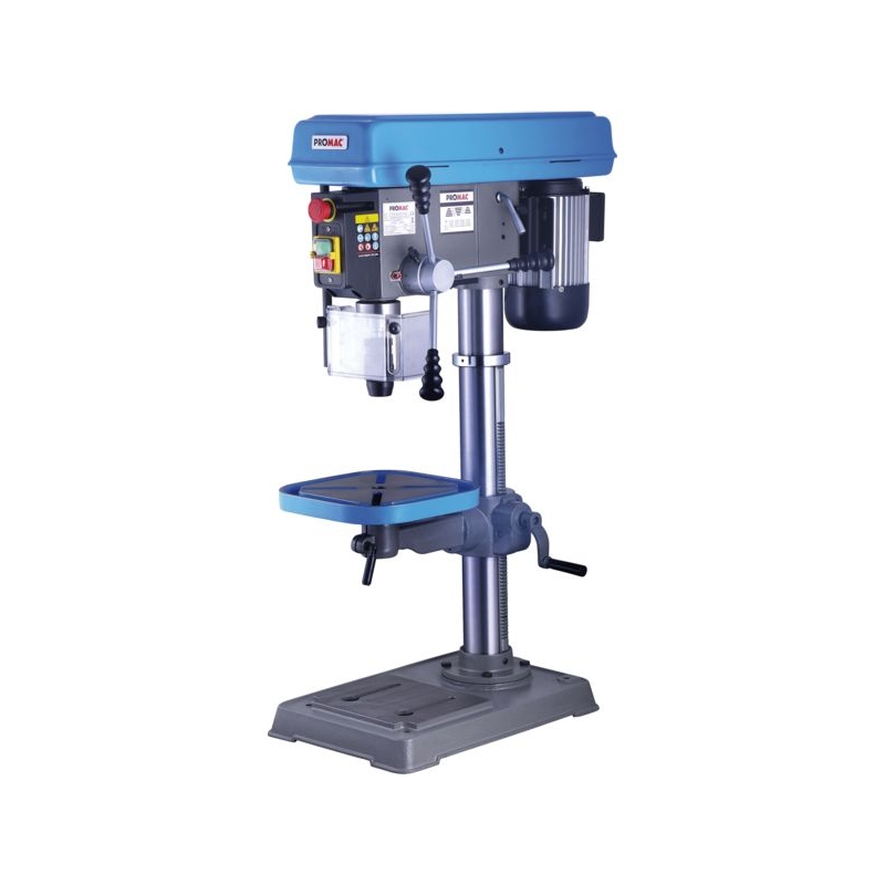 Éclairage LED de la zone de perçage. Deux lasers pour faire le point de centrage. Protection mandrin asservi. Changement de vitesse par courroie. Table inclinable 45°D/45°G. Puissance : 0,75 kW Col de cygne : 215 mm Capacité de perçage : Ø 32 mm (31,75 mm) Vitesse de broche : 180 à 3000 tr/mn Cône morse : CM3 Ø colonne : 80 mm Course de broche : 85 mm Poids : 60 Kg Dimension de table : 290 x 290 mm Livrée avec mandrin auto serrant CM3/B16mm.
