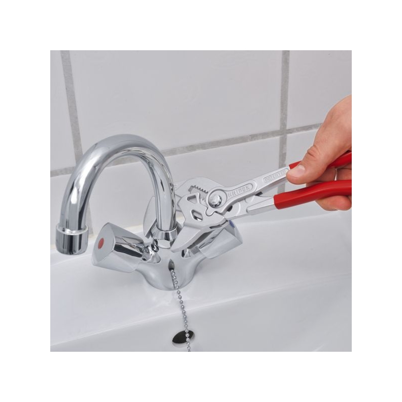 Remplace tout un jeu de clés plates, métriques et en pouce. Mâchoires lisses n’endommageant pas les supports. Réglage par simple pression du bouton. Poignées gainées en PVC.