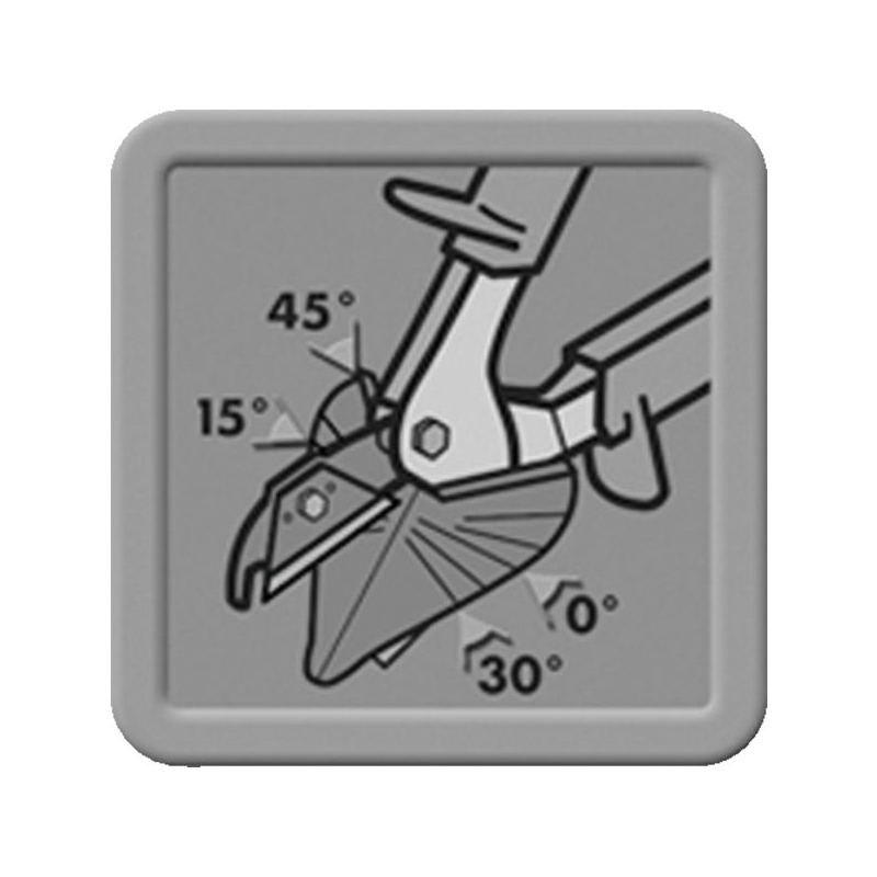 Coupe de 0 à 45° sans déformation. Coupe nette, rapide et sans effort. Lame trapèze interchangeable. Idéale pour la coupe de profilés plastiques, joints caoutchouc de vitrerie, moulures décoratives, profilés de finition de carrelage, bandes PVC. Platine angle graduée, lame cutter réversible de 56 mm.