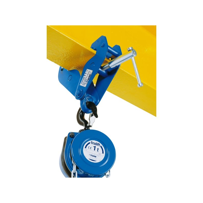 Point d'ancrage horizontal et vertical, temporaire ou permanent. Pince réglable permettant un point d'accrochage pour appareil de levage, fixe, sûr et rapide sur une large gamme de profilés IPN, IPE. Blocage par serrage à vis. 90% recyclé, 90% recyclable
