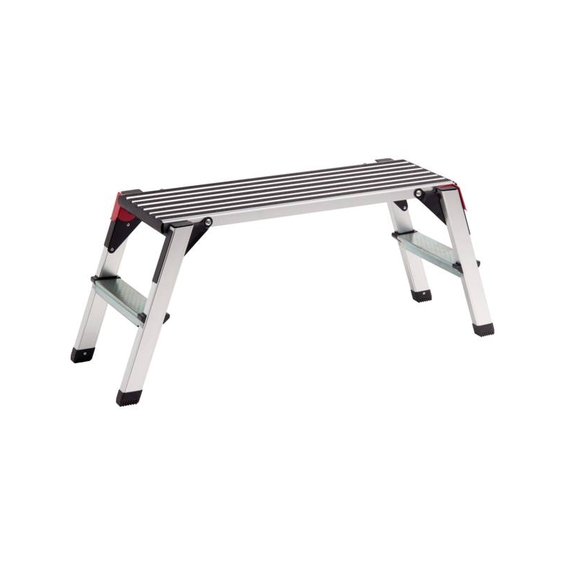 Plateau équipé de bandes rugueuses antidérapantes. Système de déblocage des plans de montée fiable. Sabots à pans coupés striés antidérapants. Marches rivetées striées antidérapantes de 100 mm. Repliable. Hauteur d'accès : 2,50 m Plateau (L x l) : 3 x 0,965 m Charge maxi. : 150 kg Poids : 7,800 kg