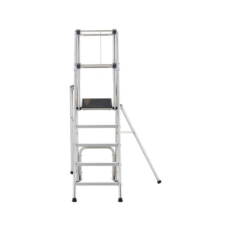 Utilisation sur sol plat. Usage intensif. En aluminium. Garde-corps fixe 360° avec portillon semi-automatique rigide. Plate-forme 400 x 490 mm avec plinthes intégrées. Marches striées antidérapantes de 60 mm. Tablette porte-outils. 2 roulettes Ø 100 mm pour les déplacements. Béquille arrière adaptée pour le passage des WC (sauf modèle 2 marches). Modèles 4 et 5 marches avec stabilisateurs. Charge maxi. : 150 kg Norme : PIRL NFP 93353 - Décret 2004.924